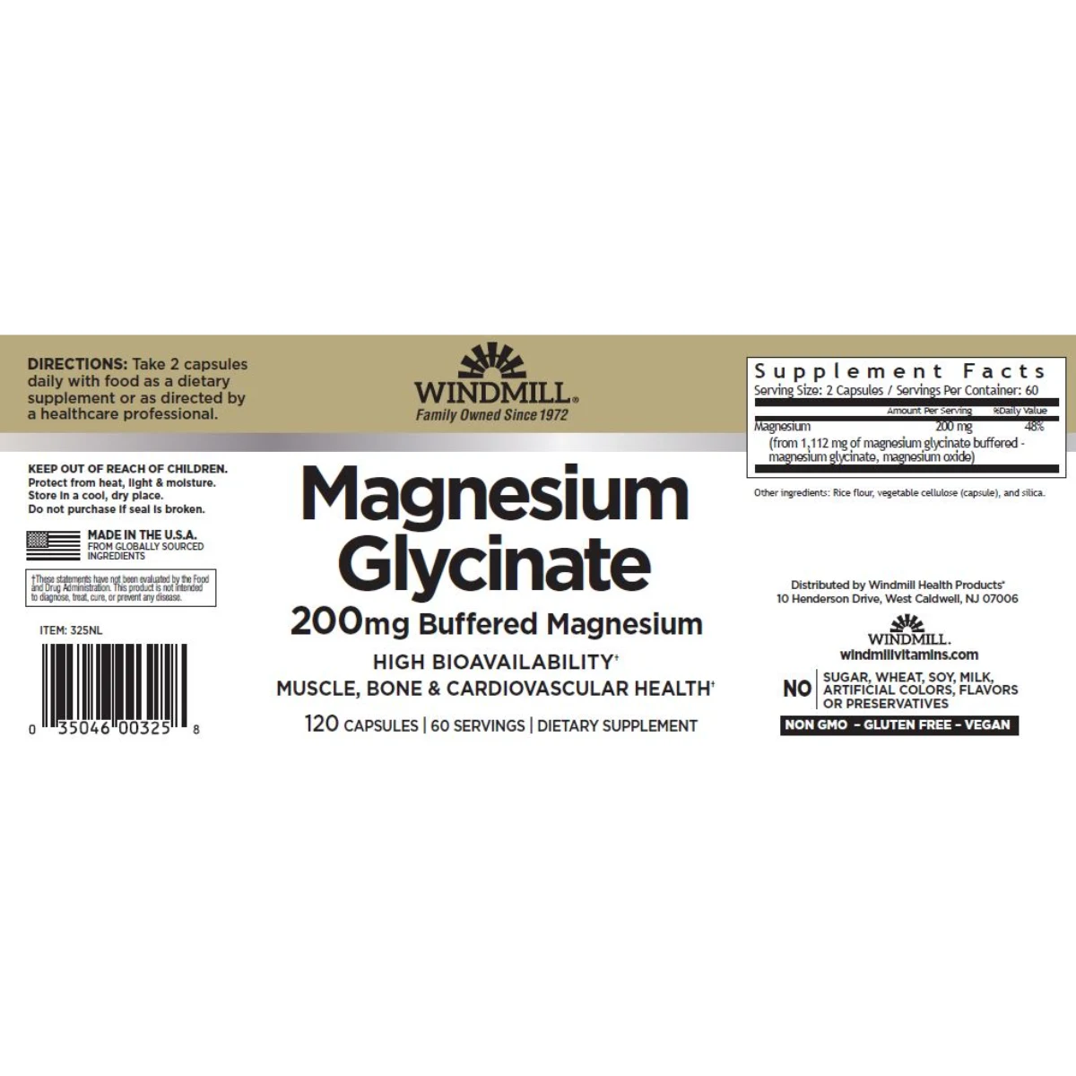 Beneficios de Magnesium Glycinate 200 mg Windmill