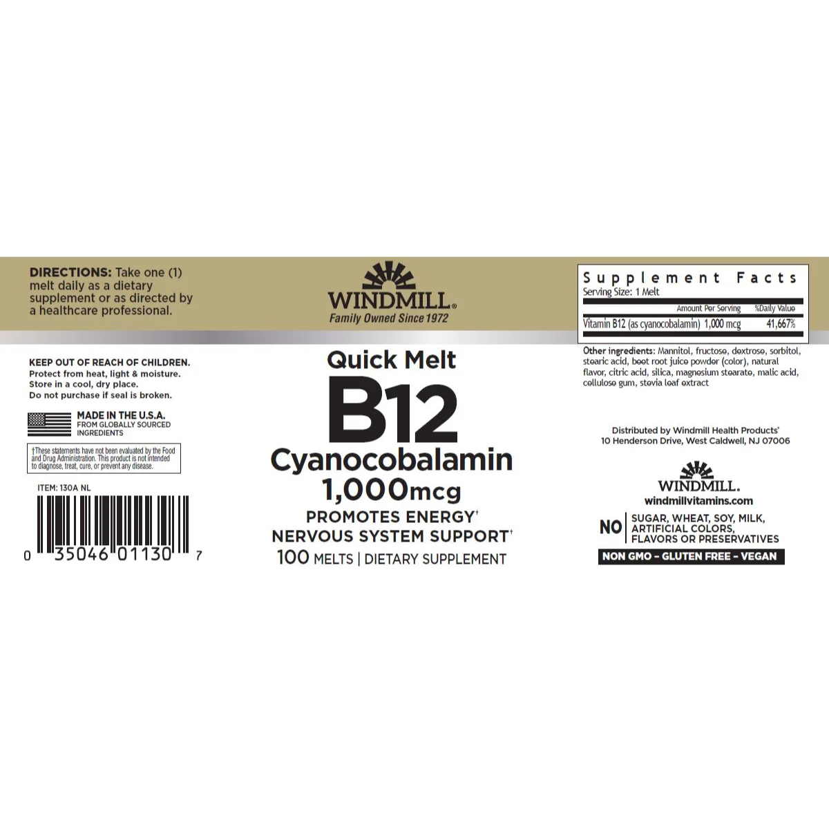 Vitamina B12 1000 mcg 100 Tabs – Windmill